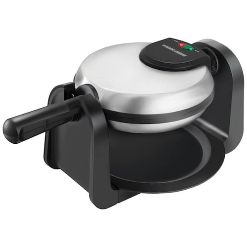Máquina de Waffle BLACKDECKER WM1404S, 800W, pratos de 18cm com superfície antiaderente, sistema de gire e cozinhe para waffles uniformes, luz indicadora de pronto e trava na alça.Porta-fio