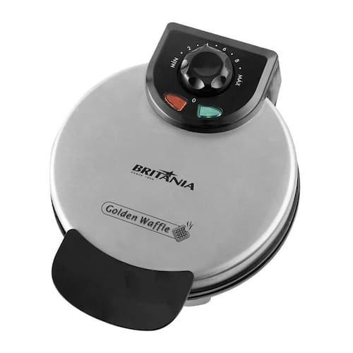 Descricao Maquina Golden Waffle Britania 850WCOD PROD: 64001067- Os melhores waffles serao feitos por voce com a sua Maquina Golden WaffleBritania 850W!- Preprara ate 4 waffles, doces ou salgados, por vez em poucos minutos!- Possue placas antiaderentes que tostam os dois lados por igual;- Base antiderrapante para maior seguranca, evita que o produto se movimente durante o manuseio;- Pode ser guardado na posicao vertical;- E seu controle ajustavel de temperatura permite regular a temperatura de acordo com a necessidade;- Waffles deliciosos preparados por voce, no conforto do seu lar, com a sua Maquina Golden WaffleBritania 850W!*Imagens meramente ilustrativas.Especificacao Tecnica Dimensoes do produtoAltura do produto 10,8 cmLargura do produto 20 cmComprimento do produto 24,5 cmPeso do produto 1,218 kgDimensoes de do produtoAltura com embalagem27 cmLargura com embalagem21 cmComprimento com embalagem 13 cmPeso com embalagem1,388 kg