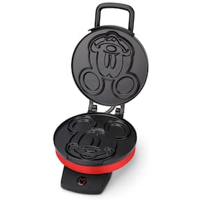 Máquina de Waffle Disney Mickey Mouse, cozinha um waffle de 6 polegadas com a forma do Mickey. Possui luz indicadora e placas antiaderentes.
