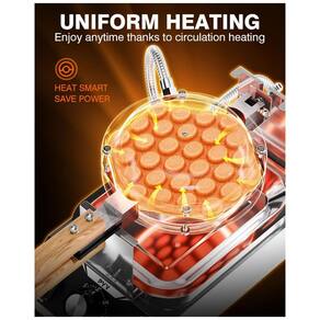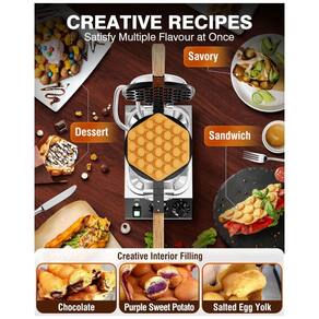 Máquina de waffle de bolhas de ovo hexagonal, 180 rotativa, revestimento antiaderente, aço inoxidável, 30 cones de ovo, controle preciso de temperatura e tempo ajustável, alças de madeira, bandeja de migalhas removível, ideal para uso comercial e doméstico.Porta-fio