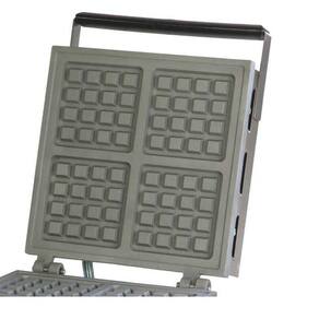 Sua estrutura é confeccionada em aço inoxidável com duas chapas em alumínio fundido de 18,5 de diâmetro. Possui termostato com controle de temperatura que vai de 0 a 300C e lâmpada piloto para indicar quando a temperatura desejada é atingida. A waffeleira conta com puxador antitérmico para que o operador possa manusear o equipamento com segurança.