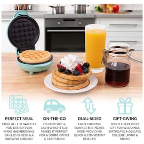 Faça rapidamente deliciosos waffles dourados, rabanadas, hashbrowns e muito mais com a minha mini máquina de waffles elétrica pessoal Cozinhar é tão simples quanto 1 2 3 tudo o que você precisa fazer é conectar a unidade, aguardar alguns minutos para pré aquecer e começar a cozinhar É pequeno e leve, por isso não cria aglomerados no balcão da cozinha, tornando o perfeito para cozinhas pequenas, apartamentos, dormitórios e trailers , trailers. Este é o presente perfeito para qualquer ocasião