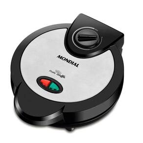 Máquina de Waffle Mondial Pratic GW-01, prepara 4 waffles, 1200W, luz indicadora, alça fria, revestimento antiaderente, controle de temperatura ajustável e guarda-fio.Porta-fio
