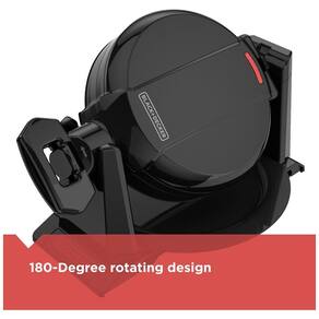 Máquina de Waffle Rotativa BLACKDECKER com placas duplas antiaderentes, sistema giratório para cozimento uniforme e capacidade para dois waffles estilo belga por vez.