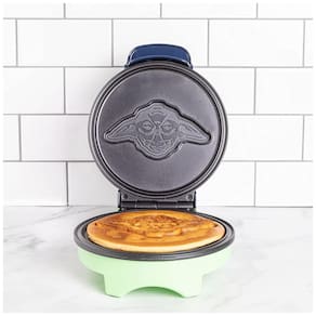 FÁCIL DE USAR Despeje a massa, baixe a tampa e, antes que você perceba, tem os waffles Yoda, prontos para manteiga e xarope. FAZ 2 WAFFLES DE TAMANHO DIFERENTE Crie waffles da cabeça do Yoda ou um waffle redondo maior de 18cm despejando a massa em todo o prato. FABRICANTE DE WAFFLES OFICIALMENTE LICENCIADO A arte Yoda na tampa certamente trará drama para qualquer paisagem de cozinha . Comemore o aniversário da Guerra nas Estrelas em grande estilo com este fabricante de Waffle Yoda oficialmente licenciado. FAZ UM GRANDE PRESENTE Os waffles Yoda são a maneira perfeita de trazer a cultura pop para a cozinha de qualquer herói. FÁCIL DE LIMPAR placas de waffle antiaderentes e limpas. Todos os fãs dos mestres Jedi vão adorar nosso Criador de Waffle Yodi de Star Wars. Leve o café da manhã para uma galáxia muito, muito distante, com esta máquina de waffles antiaderente. Faz waffles saborosos do seu jeito. Quer goste de castanhos e crocantes ou tenros e dourados, o termóstato regulado e a tampa ponderada garantem um aquecimento uniforme, enquanto as luzes indicadoras duplas facilitam a adição da massa e a remoção do produto acabado. Mais do que um ferro waffle, ele também pode ser para fazer ovos, brownies, bolos, quesadillas ou até mesmo como uma sanduicheira Yoda. A máquina de waffles é compacta, fácil de usar e de limpar