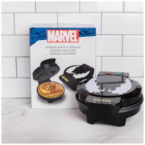 Máquina de Waffle com tema Marvel Venom, revestimento antiaderente, prepara até 6 waffles com a máscara do Venom, design divertido para a cozinha.Porta-fio