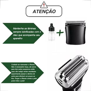 Maquina Depilar Virilha Peito Braço Perna Bigode Nuca Axila Máquina Kemei, deixa a pele lisa como se tivesse lâmina de barbear. Com 3 funções, barbear, cortar cabelo e aparar pelos do nariz, essa e a melhor opção do mercado. Principais Utilizações: Barbear Cortar Cabelo Acabamento Depilador íntimo masculino Depilador íntimo feminino Braços Pernas Costas Pelos do nariz Recomendações.: A cabeça shaver não causa irritação Ideal para pessoas que tenham alergia a lâmina e giletes Usar a lâmina de barbear após abaixar os pelos com a lâmina de corte. Para fazer a troca das cabeças do barbeador, girar a cabeça no sentido ANTI-HORÁRIO , e para encaixá-lo novamente girando no sentido HORÁRIO . Mantenha as lâminas lubrificadas Melhor opção para uso diário. Deixa a pele bem lisa. CARACTERÍSTICAS 3 em 1 Bivolt 110/220 v Frequência 50/60Hz Bateria recarregável Alta precisão 8 horas para carregar 60 min utilização sem fio ITENS INCLUSOS 1 Máquina Kemei 1 Cabeça de lâmina Corte 1 Cabeça de lâmina Barbeiro 1 Cabeça de lâmina nariz 1 Manual 1 Cabo carregador 1 Pente para limpeza 1 Óleo Marca: Não Informado