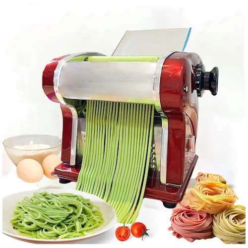 Design Multifuncional 2 em 1: A máquina elétrica de fazer macarrão SHILINTONG combina as funções de pressionar a massa e cortar o macarrão em um só aparelho. Alterne facilmente entre os modos para criar massa com espessura ajustável de 0,34 mm e cortar macarrão de 2,5 mm. Fácil de operar e limpar, perfeito tanto para uso doméstico quanto comercial. Seguro e Eficiente, em Aço Inoxidável de Grau Alimentício: Alimentado por 110V 135W com um plugue triangular padrão dos EUA para segurança. O corpo totalmente em aço inoxidável possui uma lâmina embutida para cortar dois tipos de macarrão - 34 dentes para macarrão redondo de 2,5 mm e 56 dentes para linguine de 2,5 mm. Também faz massas para dumplings e wontons sem esforço. Personalize seu Macarrão Saudável: Adicione ovos, suco de vegetais ou especiarias à massa para noodles, peles de dumplings ou wrappers de wonton personalizados e saudáveis. Sovar a massa manualmente, cortá-la em pedaços pequenos, pressionar repetidamente até obter a textura desejada. Certifique-se de que a massa esteja ligeiramente seca para obter os melhores resultados. Compacta e Leve para Uso Versátil: Com um tamanho compacto de 22 x 18 x 19 cm e design leve de 7,98 kg, esta máquina é fácil de mover e armazenar. Ideal para cozinhas domésticas, restaurantes de macarrão, cafés da manhã e até barracas de comida de rua. Economize Tempo e Seja Eficiente: Produza até 5 kg de macarrão fresco por hora, tornando rápido e fácil criar macarrão caseiro saudável. Seja para macarrão, peles de dumplings ou wrappers de wonton, esta máquina simplifica o processo, permitindo que você desfrute de refeições deliciosas e frescas com a família e amigos.
