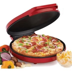 Máquina elétrica para assar pizza broto, com grill, material de fácil limpeza, cozimento duplo e aviso luminoso.Chapa antiaderente