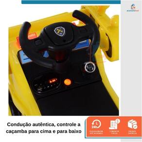 Maquina Escavadeira Infantil Grande Articulado Baby Style Amarela A Escavadeira é ideal para dar aos seus filhos uma experiência de condução autêntica, esta escavadeira montável imita o trator de verdade e permite que seus filhos controlem a caçamba para cima e para baixo para diversão sem fim. Equipado com uma pá enorme e braços e articulações flexíveis, as crianças podem operar o trator com facilidade. Luzes realistas do volante e luzes traseiras que operam com pá totalmente controlável. Com um cinto de segurança, os filhos permanecem sentados e uma velocidade limitada de 3 km / h não é perigosa, mesmo para crianças pequenas.