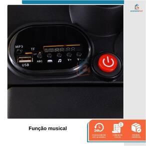 CARACTERÍSTICAS TÉCNICAS: Material: PP e aço Medidas: 53cm altura x 41,2cm largura x 106,9cm comprimento Idade recomendada: Acima de 3 anos Peso suportado: Até 30kg Tempo de carregamento: 8 a 12h Tempo de uso: 1h Velocidade máxima: 3 km/h Bateria: 6V Peso: 7,6kg Marca: Baby Style Ref.: 998540 Homologação Inmetro: CE-BRI/IQB 006429 54879/21-004 Marca: Não Informado