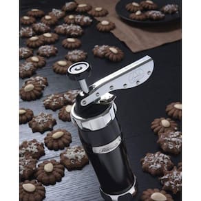 Feita com rolos de alumínio sob uma patente internacional, essa máquina oferece durabilidade e eficiência incomparáveis. Com a Biscoiteira Máquina De Fazer Biscoito Preta Marcato, você pode preparar até 20 tipos diferentes de biscoitos em dois tamanhos. São 20 matrizes disponíveis, sendo uma para biscoitos pequenos que faz entre 35 e 40 unidades e outra para biscoitos grandes que faz entre 20 e 25 unidades maiores . Além disso, essa máquina possui corpo de alumínio anodizado, próprio para o uso com alimentos. A coloração é feita através do processo de oxidação do alumínio, garantindo um acabamento bonito e duradouro. No entanto, é importante ressaltar que não se deve utilizar papel com a máquina, não é recomendado levar à lava-louças, não deve ser limpa com objetos de metal e deve-se utilizar apenas água morna e detergente neutro para a limpeza.Luz indicadora de funcionamento