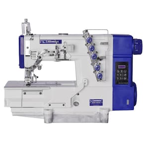 Máquina Galoneira Plana Fechada Motor DIRECT DRIVE LM-7500D-01CB-110v. 3 agulhas e 5 linhas. Lubrificação automática. Motor servo eletrônico com painel de comando embutido. Parada de agulha superior e inferior configurável. Indicada para bainha, colaretes, gola, barra, aplicação de viés/debrum e elástico rebatido em tecidos leve a médio. Funções configuráveis via painel: Ajuste de velocidade, posicionador de agulhas. Baixo nível de ruído e baixa vibração. Motor embutido com economia de energia de 60~70%. Montagem completa com mesa, estante e rodízio. Aumento de produtividade em 15%. Motor Direct-Drive ligado diretamente ao eixo principal para maior agilidade.Funções