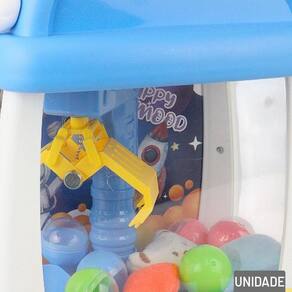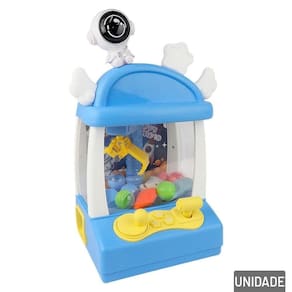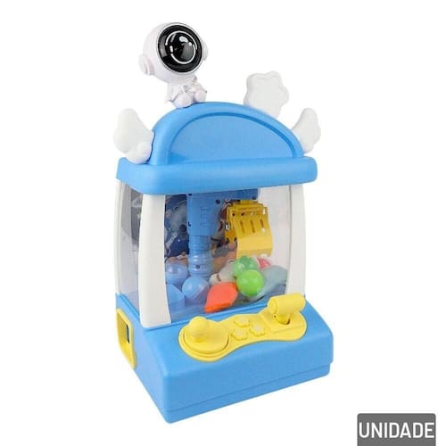Máquina Infantil à Pilha Pega Fofuras com M A diversão está garantida com a encantadora Mini Máquina Infantil à Pilha Pega Fofuras com Músicas! Inspirada nas clássicas máquinas de pegar brinquedos de parque, essa versão em miniatura foi desenvolvida especialmente para crianças, unindo interatividade, sons divertidos e muita fofura.\nBasta inserir os mini brindes ou pelúcias no compartimento interno, acionar a máquina e usar os controles para tentar "pescar" as fofuras com a garra mecânica. Tudo isso ao som de musiquinhas animadas que tornam a experiência ainda mais envolvente e divertida. É ideal para entreter, estimular a coordenação motora, a paciência e o raciocínio rápido.\nUtiliza: 4 Pilhas AA (não incluidas).\nEspecificações:\nMarca : MAXI BRAS\nTipo de material : Plástico\nCores ou Estampa : Azul\nDimensões do Produto : 30 X 19 X 16 CM\nDimensões da Embalagem : 30 X 19 X 16 CM\nPeso Bruto (Gramas) : 0.827