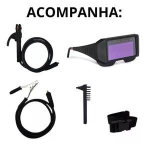 - garra positiva; - garra negativa; - escova de aço; - porta eletrodo; - visor; - óculos de solda com escurecimento automático Marca: Não Informado Ean: 1173550001007