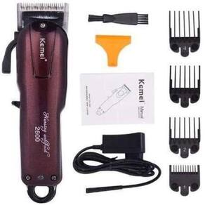 Kemei 2600 Cordless design elegante, sem fio para facilitar o trabalho do profissional, pois hoje os cortes pedem o melhor do profissional e o melhor equipamento.Isso é encontrado na Kemei 2600 para isso possui um motor potente V5000 e sua lâmina de corte em aço Inoxidável que é ideal para o profissional de ponta que está se destacando no ramo da barbearia, Para facilitar possui um Led indicativo onde você saber a necessidade de carga do equipamento, tem uma autonomia de 60 minutos.Kemei 2600 é um produto que você precisa ter em sua Barbearia ou em sua casa para seu próprio uso.Esta maquina contém.Motor 5000VPotência 9W01 Fonte para Carregar 110/220V Bivolt01 Escova de Limpeza04 Pentes Guias de 2mm/ 3mm/ 4mmPensando em você Profissional ainda esta incluso02 Pentes Guias de 1.5mm/ 4.5mm 01 Kit de Tesouras Profissionais para Cortar Cabelo em Aço Inoxidável no tamanho de 5,501 Tesoura Fio Navalha 5,501 Tesoura Fio Laser 5,501 Tesoura Desbastadora 5,501 Navalha 01 Case 01 Tesoura BigodeRG N 80700620001