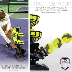 Franklin Sports Máquina lançadora automática de pickleball – lançador de pickleball ProShot para prática de pickleball + treinamento – lançador portátil de pickleball + servidor de bola – Equipamento - Lançador automático: esta máquina de arremesso eletrônico de pickleball lança pickleballs a cada 8-9 segundos para que os jogadores possam praticar suas habilidades de arremesso por conta própria - Treine suas habilidades: Treine seu forehand, backhand, dinks e tacadas de toque com facilidade. Este lançador é a melhor peça de equipamento de treinamento de pickleball para ajudar você a levar seu jogo para o próximo nível - Portátil: este lançador automático de bolas portátil pode ser alimentado com (4) pilhas D (não incluídas) ou o adaptador de alimentação A/C anexado para que você possa jogar em casa ou levá-lo para as quadras com facilidade - LEVE: O design resistente e leve garante que este lançador automático de bolas seja construído para durar e fácil de levar em movimento, para que você possa levar o jogo com você - Comporta 15 bolas: Projetado para suportar até (15) bolas de pickleball ao mesmo tempo para que os jogadores possam carregar a máquina e praticar suas habilidades sem precisar recarregar constantemente