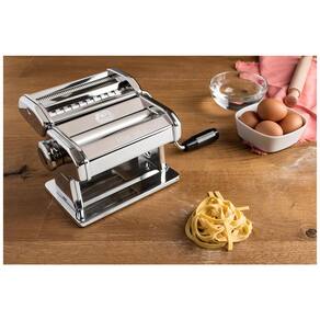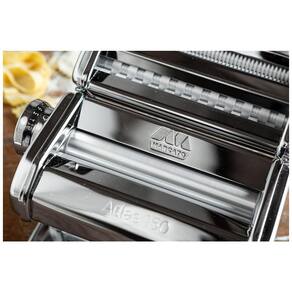 Para os amantes do design e estilo italianos, a Máquina de Fazer Massa Atlas 150 Clássica é perfeita para preparar massas frescas em casa. Com ela, é possível fazer lasanha, fettuccine, tagliolini e outras 11 formas de massa, graças à variedade de acessórios disponíveis. Feita em aço cromado de alta qualidade, cada detalhe foi projetado para realçar elegância, durabilidade e simplicidade. A Atlas 150 produz folhas de massa com largura máxima de 150mm. Compatível com o Motor Pastadrive (vendido separadamente) para maior facilidade. Fácil de limpar, basta aguardar 30 minutos e remover os resíduos de massa com uma escova seca. Não é adequada para lava-louças.