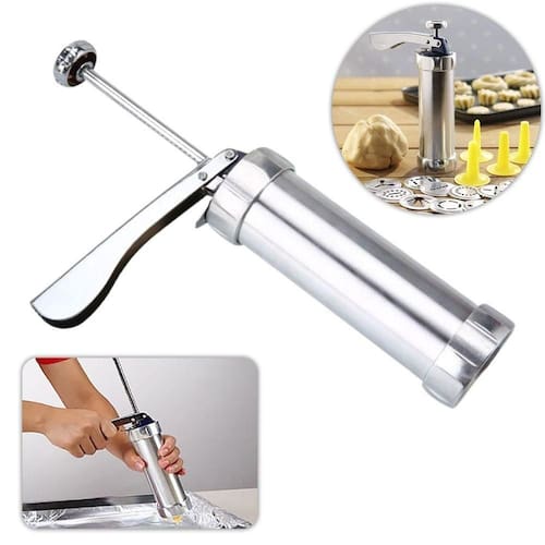 Leve sua produção de biscoitos a um nível com esta máquina manual! Ela permite espremer uma grande quantidade de biscoitos em pouco tempo, garantindo resultados bonitos e uniformes.