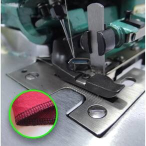 Faz acabamento em qualquer tecido, inclusive lã e malha, acabamentos e costura em tricot, tecidos elásticos, lingerie, flanelinha, algodão, poliéster, renda, cetim, chifon, forro, malhas e tecidos diversos.