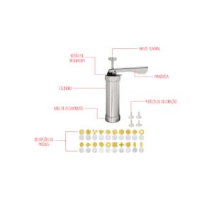 Com um design clássico, a Máquina para Biscoitos da linha Verona da Brinox é tudo que você precisa para tornar a sua cozinha um ambiente ainda mais delicioso. Aproveite o produto para preparar seus próprios cookies, livres de conservantes. Escolha seu sabor favorito, prepare com um dos 20 formatos e 4 bicos para decorar, e divida bons momentos em família, do seu jeito. Com acabamento em inox, a biscoiteira manual possui um formato cilíndrico e leva consigo a diversidade do preparo de biscoitos caseiros, com um modo de uso super intuitivo e prático. A Máquina para Biscoitos possui 21 x 15,5 x 5,5 cm de medida.