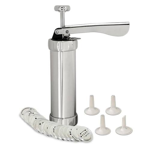 Máquina manual para biscoitos Brinox, linha Verona, com 20 formatos e 4 bicos para decorar. Design clássico e fácil de usar.Luz indicadora de funcionamento