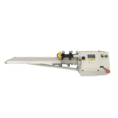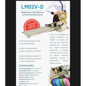 Máquina de cortar viés/friso direct drive de 02 facas. Possui painel de comando integrado para ajuste de velocidade e opção para executar acionamento da máquina por pedal ou modelo automático. O funcionamento do corte funciona por esmagamento, onde as facas pressionam o tecido contra o cilindro de aço.Funções