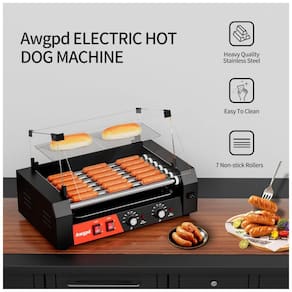A máquina para hot dog com 7 rolos é um equipamento elétrico compacto de uso comercial e doméstico, desenvolvida para grelhar hot dogs, salsichas, linguiças, rolinhos de ovo e bolinhas de peixe de forma uniforme e contínua. Conta com estrutura em aço inoxidável e camada externa em liga de alumínio, combinando resistência à corrosão com praticidade no dia a dia.