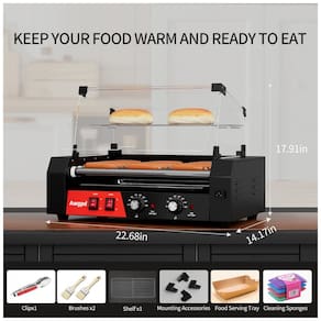 Os 7 rolos giratórios em aço inoxidável alimentar realizam rotação de 360° por meio de corrente de três pontos, garantindo que todos os itens recebam calor de maneira homogênea durante o preparo. A capacidade de até 18 hot dogs por ciclo torna o equipamento adequado para lanchonetes, padarias, lojas de conveniência, food trucks e eventos.