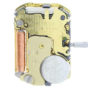 Informações do produto: Mecanismo para Relógio 5R21 A máquina 5R21 não tem ponteiro de segundos. Este Mecanismo é Utilizado em diversos modelos de relógios Femininos. Máquina Quartz para relógio de pulso Miyota 5R21 com horas, minutos É extremamente pequena, muito Utilizado em relógios delicados. A bateria que é Utilizado é a 416. Marca: Miyota