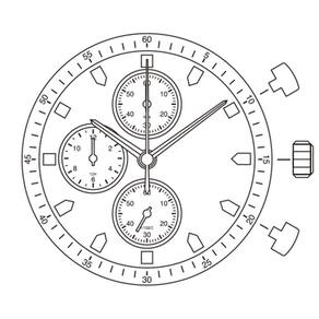 Máquina para relógio cronógrafo, sem calendário com ponteiros laterais no 6, 9, 12. Na Fornitura Central você encontra Mecanismo Para Relógio Miyota OS30 com funções na posição 6hrs segundos , na posição 9hrs Cronógrafo das horas , na posição 12hrs Cronógrafo dos minutos e cronógrafo de segundos central. Marca: Miyota