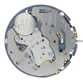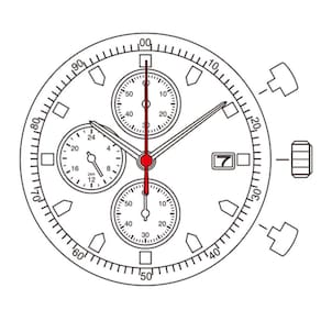 Miyota 0S90, 13 1/2 Ligne, 3 ponteiros, data 3, 3 olhos 6,9,12 , cronógrafo, movimento de quartzo Tamanho / Tamanho mm 13 30,80 Altura mm 4,13 Altura total mm 5,95 Posição de data D3 Roda de horas MY075.392 Haste MY065.453 Bateria 399 / SR927W Orifícios de mão mm 120/70/17/26 / 26/26