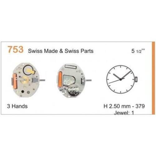 Modelo: Movimento analógico de quartzo Linha: normtech Calibre: 753 Tamanho: 5 Altura de encaixe de mão: 1