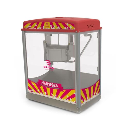 - Estrutura em aço inox; - Carenagem em polímero termoformado de alta resistência; - Portas e vitrines em vidro temperado; - Panela basculante em aço cromado com tampa em inox, parte interna em alumínio, com capacidade para 150g de milho de pipoca; - Conjunto misturador estanhado; - Gaveta de resíduos em aço inox; - Resistência inferior com potência 200w blindada; - Resistência da panela com potência 1000w blindada; - Consumo 1,0 kw/hora; - Termostato para controle automático da temperatura; - Lâmpada para iluminação interna; - Fácil manuseio;