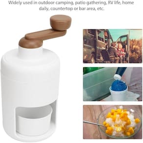 Maquina Raspadinha De Gelo Triturador Manual Drinks Receitas Máquina de Raspadinha Gelo Ajuda você a obter gelo raspado, casquinhas de sorvete para fazer bebidas divertidas sem eletricidade. Leve e portátil, ótimo para camping, passeios de barco, utilização não autorizada, festas infantis e muito mais. Feito de materiais de qualidade alimentar saudáveis e ecológicos, as lâminas de aço inoxidável raspam o gelo rapidamente, proporcionando gelo raspado perfeitamente fino a cada corte. Ótimo para áreas de cozinha, bancada ou bar. A alça suavemente e as partes removíveis facilitam a limpeza. Os cubos de gelo são liberados facilmente com um toque do dedo ou um simples, e você obtém um cone de neve completo em apenas 1 minuto. ================BENEFÍCIOS=============== 1. Material de aço inoxidável, reutilizável, não enferruja, material: Feito de ABS e material de aço inoxidável, reutilizável, não enferruja, seguro e duravel. 2. Lâmina de aço inoxidável: A lâmina afiada pode esmagar e raspar facilmente o gelo, com bom efeito de barbear gelo raspado e operação simples. 3. A manivela de mão não requer eletricidade, operado à mão: O design portátil da manivela de fácil virada não requer eletricidade, leve para acampamento. 4. Conveniente de usar: design removível, fácil de limpar, treliça de gelo transparente embutida, grande capacidade, pode ser para armazenar gelo esmagado. 5. Ocasiões: Fazendo cones de neve, slushies, coquetéis congelados, gelo esmagado para bebidas refrescantes, etc. ================ESPECIFICAÇÕES=============== - Tamanho: cerca de 26,412 cm/10,39 x 4,72 polegadas - Material: ABS + PP - Capacidade: cerca de 1000ml -cor: branca ================ ITENS INCLUSOS=============== 01 X Máquina de gelo raspado manual 01 X Bandeja de Gelo