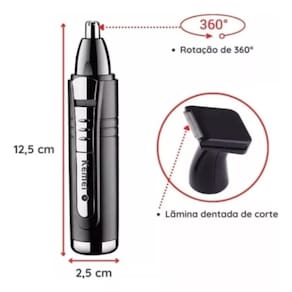 Corta com precisão os pelos do nariz, sobrancelhas bem aparadas, elimina os pelos das orelhas entre outros que ficam na região da face e do pescoço.