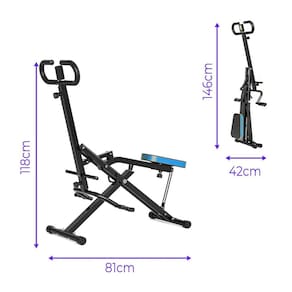 Características do produto: - Material: Estrutura em aço + plásticos reforçados - Função 2 em 1: Com essa máquina, você pode praticar agachamentos e remo, fortalecendo glúteos, coxas, abdômen, costas e ombros em um só aparelho. - Resistência ajustável: Modifique o nível de resistência para deixá-lo do jeito certo para você, seja iniciante ou avançado. - Máquina dobrável: A máquina dobra rapidamente para facilitar o armazenamento e o transporte. - Monitor LCD integrado: Monitore seu tempo, suas repetições e suas calorias queimadas. - assento Ergonômico: Assento acolchoado, garantindo conforto e segurança. - Apoios de pé com textura antiderrapante.
