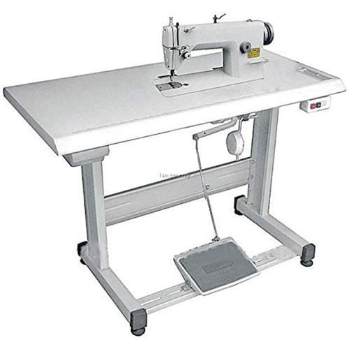 - Máquina de costura industrial tipo reta com motor convencional ponto fixo, 5000 pontos por minuto (alta velocidade), com sistema de lubrificação automática, enchedor de bobina, lançadeira pequena de movimento horizontal, com alavanca de retrocesso para arremate inicial e final, protetor de dedos e correia, possuindo todos os seus acessórios regulares, etc.