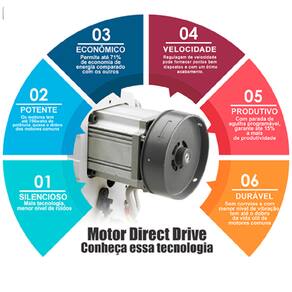 Posicionador de agulha em cima ou embaixo; Ajuste de velocidade; Economia de energia de até 50%;