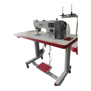 S2 - Reta, 1 agulha, direct drive, painel digital embutido ao cabeçote, ponto 5mm, altura do calcador 5/13mm, com parada de agulha e controle de velocidade, com led e botão de meio ponto, lançadeira pequena, 5000ppm. Acompanha mesa e motor. Home Máquinas industriais