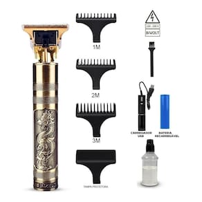 Maquina Retro De Acabamento Cabelo Barda Pezinhos Maquininha retro para acabamento profissional em metal, maquininha com alta tecnologia em sua lâmina feita em aço carbono é uma das melhores e mais afiada do mercado, faça seus acabamentos barbas com máxima precisão sem enroscar ou puxar nenhum fio. lâmina em T de alto desempenhoCaracterísticas:Utilização sem fio, mais prático de usar.Bateria interna de recarga rápida de longa vida útil.Alta estabilidade e baixo ruído.Não machuca o couro cabeludo.Cabeça de corte dupla, rompe os fios com facilidade. Proteção contra excesso de carga da bateria.Autonomia de cerca de 2 Horas.4 Pentes Inclusos.Sistema de corte preciso e afiado para corte rápido.Fácil de limpar. Especificações: bateria de ion de lítio de 18650.Carregamento por cabo usb usa na caixinha do carregador do celular acompanha o cabo .Lâmina em T de aço de carbono.Botão de liga e desliga.Maquininha em metal.Tensão de entrada: 110240V.Tensão de saída: DC 5V.Potência nominal: 5W.Tempo de carregamento: 2 horas.Tempo de uso: 120 minutos Medida da maquininha: Altura de 15 cm.Circunferência de 2,5 cm. itens inclusos: 1 - Maquininha.4 - Pentes um é protetor da lamina .1 - Carregador de batia usb.1 - Bateria recarregável. 1 - Escova para limpeza1 - Óleo para lubrificação da lâmina. em caso de clonagem dessa descrição e fotos, os responsáveis serão cobrados de acordo com a Lei 9.610/98 de Direitos Autorais. BOAS COMPRAS perguntas frequentes: P: Tem o produto em estoqueR: Sim todo produto que o anúncio está ativo temos em nosso estoque. P: Como faço para recarregar sem a fonteR: Pode ser carregado em qualquer dispositivo que contenha conexão USB, ou até mesmo uma caixinha de tomada de celular para carregar. P: Boa tarde, essa máquina também depilar pernaR: Sim pode ser usada para depilar pelos sim.