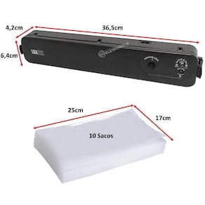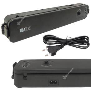 Máquina Seladora à vácuo foi desenvolvida para que os seus alimentos durem até 8x mais, e que mantenham eles mais saborosos e frescos por muito mais tempo. De fácil manuseio e que garante a qualidade dos alimentos durante a sua selagem. Leve e portátil podendo ser transportado para onde quiser. Ideal para a selagem dos alimentos, Proteja além dos alimentos, seus documentos, fotos e joias com a máquina seladora à vácuo, a mais completa do mercado.ATENÇÃO PARA UTILIZAÇÃO CORRETA:Utilize somente sacos destinados a selagem a vácuo;Após ligar a maquina, espere 30 segundos para ela esquentar e então a utilize;Depois de cada operação de selagem aguarde de 1 a 2 minutos para utilizar novamente;Não coloque comida em excesso dentro do saco. Não coloque mais que 3/4 do volume máximo;Não molhe as extremidades do saco, pois quando molhado, o processo de vedação é dificultado;Caso a operação seja frequente, em um curto período de tempo, o saco pode derreter devido ao alto aquecimento da máquina.INFORMAÇÕES TÉCNICAS:Marca: LuatekModelo: LK5099Material: PlasticoPotência: 90wVoltagem: 110v - 220v BivoltTamanho do produto: 36,5cm x 4,2cm x 6,4cmTamanho do cabo: 82cmPeso: 375gCor: PretoCONTEÚDO DA EMBALAGEM:1 Seladora embaladora LK50991 Cabo de energia10 Sacos plásticos1 Manual1 Caixa/embalagemGarantia:Confira O Produto No Ato do Recebimento, Garantia Apenas Contra Defeitos De Fabricação Diretamente Com Fabricante/Fornecedor. Marca: Luatek Dp