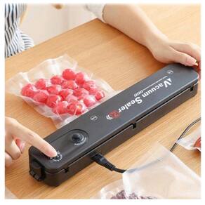 Máquina seladora a vácuo maior conservação alimentos Seladora vácuo elétrica embaladora alimentos descrição: a seladora a vácuo é perfeita para armazenar alimentos de forma compacta, prática e eficiente. A remoção de ar das embalagens é ideal para reduzir a deterioração e o desperdício de diversos tipos de alimentos. Acompanha embalagens especiais de fácil abertura para utilizar com a seladora elétrica. Especificações: - material: abs - dimensões aproximadas: tamanho: 37 x 7 x 8 cm - peso: 410 g - voltagem: 220v - tomada padrão: eu itens inclusos na embalagem: - 01x seladora vácuo elétrica - 10x embalagens - 01x cabo de força O envio ocorre de forma aleatória não podendo escolher a cor, enviamos conforme disponibilidade de cores em nosso estoque Marca: Doxa