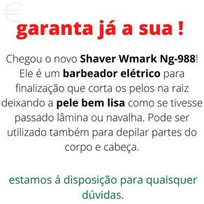 Chegou o novo Shaver Wmark Ng-988 Ele é um barbeador elétrico para finalização que corta os pelos na raiz deixando a pele bem lisa como se tivesse passado Gillet ou navalha. Pode ser utilizado também para depilar partes do corpo e cabeça.