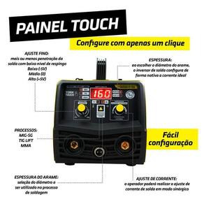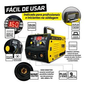 Maquina solda inversora mig 160a sem gás 3 em 1 tig eletrodo - super tork cimets-7160-220v A maquina solda inversora mig 160a sem gás 3 em 1 tig eletrodo - super tork cimets-7160-220v é uma ferramenta versátil e poderosa, projetada para realizar soldas de alta qualidade em diversos materiais. Processo mig sem gás: alta produtividade e facilidade de operação Processo tig-lift: possibilita a solda de chapas finas e proporciona melhor acabamento Processo mma eletrodo revestido: solda todos os tipos de eletrodos Função mig - sinergia eletrônica mig: regulagem automática de velocidade e tensão de solda mig Função mig - seleção de diametro do arame: permite ajustar o diâmetro do arame Função mig - ajuste fino de tensão/voltagem mig: possibilita a soldagem em chapas finas com precisão Função mma - hot-start automático: facilidade de abertura de arco elétrico com vários tipos e diâmetros de eletrodos Função mma - arc-force automático: controle de estabilidade de arco inteligente Função mma - anti-sticking automático: não cola o eletrodo na peça de trabalho - características: Tipos de máquina de solda: mma, mig sem gás, tig Amperagem máximo: 160 a Com display digital: sim Com tecnologia inverter: sim Ciclos de trabalho: 60% Ligação: tomada 20a Frequência: 50/60hz Voltagem: 220v Corrente de entrada maxíma: 25a Corrente de entrada eficiente: 19.3a Potência: 5.500w Tensão no vazio: 65v Amperagem mínima: 15a Amperagem máxima: 160a Capacidade do alimentador kg : 1kg Consumível mma: 2.0 2.5 3.2 4.0 Consumível mig: 0.6 0.8 0.9 1.0 Consumível tig: 1.6 2.0 2.4 3.2 Conector: 9mm + plug 2 vias Dimensões: 310 x 160 x 180mm Peso: 3,800 kg Mma - eletrodos revestidos: aço carbono, aço inox, ferro fundido, alumínio, metalon, perfil metálico, chapas automotivas, carrocerias, estruturas metálicas entre outros materiais ferrosos Tig dc: aço carbono, aço inox, ferro fundido, metalon, perfil metálico, chapas automotivas, carrocerias, estruturas metálicas entre outros materiais ferrosos Mig sem gás: aço carbono, metalon, perfil metálico, chapas automotivas, carrocerias, estruturas metálicas entre outros materiais ferrosos - itens inclusos: 1kg arame 0.8 mm, 2 esquadros magnéticos, bateria, eletrodo 2.5mm, escova removedora, garra do terra, lentes, máscara de solda 4k, porta eletrodo, roldana, tocha mig - : 3 anos de de fábrica. Marca: super tork Modelo: cimets-7160-220v Código de barra: 7898533565324 Imagens meramente ilustrativas, podendo sofrer pequenas alterações. Todas as informações divulgadas são de responsabilidade do fabricante/fornecedor