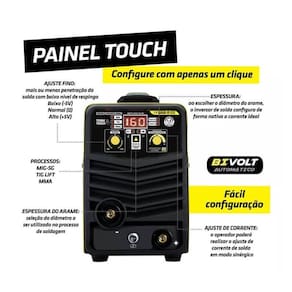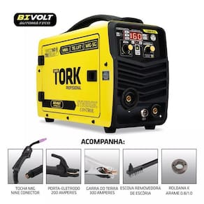 Maquina solda inversora mig sem gás 160a mma tig trisolda 50/60hz tork 127/220v Máquina de solda inversora mig sem gás 160a mma tig trisolda Super tork touch 160 trisolda - compacta, versátil e de alta tecnologia Processos de soldagem: Mig sem gás: ideal para soldagem de chapas automotivas e estruturas metálicas. Tig: acabamento superior em chapas finas. Mma eletrodo revestido : alta versatilidade para diferentes materiais. Profissionais e iniciantes, permitindo soldar com qualidade mesmo sem experiência prévia. Cor: amarelo, com design robusto e prático. - características: Frequência: 50/60 hz Voltagem: 127/220v bivolt automático Potência: 6.400w Amperagem: 20a 160a Ciclo de trabalho: 60% Diâmetro do arame: Mínimo: 0,6 mm Máximo: 1,0 mm Diâmetro do eletrodo: até 4 mm Materiais soldáveis: aço, chapa, aço inox, alumínio Peso: 4,2 kg Classe de isolamento: classe f Dimensões: compacta e fácil de transportar com alça integrada. Proteção: contra sobrecarga e função anti-stick. - itens inclusos: Garra negativa Porta eletrodo Manual do usuário Roldana de tração 0.8/1.0 Tocha mig nine-conector - : 1 ano de fabricante Marca: super tork Modelo: touch 160 trisolda imets-8160-5k-bv Código de barra: 7898533564846 Imagens meramente ilustrativas, podendo sofrer pequenas alterações. Todas as informações divulgadas são de responsabilidade do fabricante/fornecedor Marca: Não Informado Ean: 7898533564846