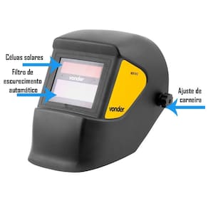 Oferece mais tecnologia, praticidade e segurança nos trabalhos com solda, sendo uma referência em inovação. Alimentação por bateria de lítio/células solares. Tonalidade no estado claro: 3. Área de visão: 98 mm x 35 mm. Dimensões do filtro: 109 mm x 89 mm x 8 mm.