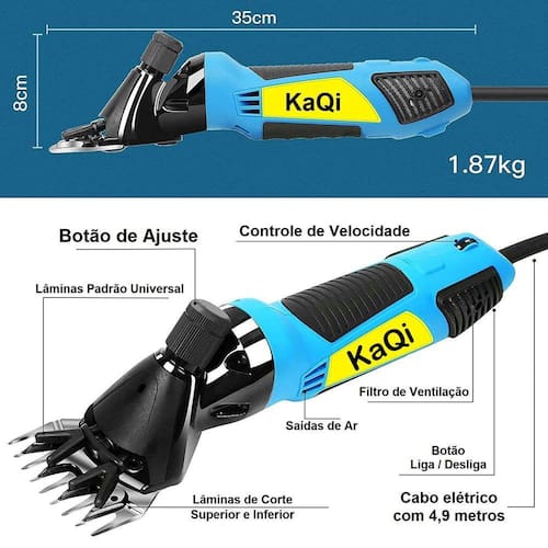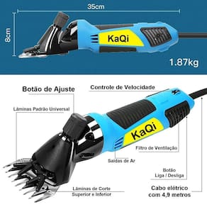 Máquina Tosar Tosquiadeira 550 Watts Ovino Ovelha Carneiro 220v KaQi 6176 Tosquiadeira Premium Máquina de Tosar 550 Watts KaQi 220v.Com controle de Nível de Velocidade.Regulagem de Espessura de Corte. Surpreenda-se com a super Tosquiadeira Máquina de Tosar 6176 KaQi 220v. Voltagem 220v. Indicada para aparar e cortar pelos de ovelhas, carneiros, ovinos, caprinos, lhamas, aplacas. Equipado com um poderoso motor de 550 Watts de potência, de alta velocidade, sistema easy-start partida suave , chave seletora on/off, ajustes de níveis de velocidade até 2800 RPM e regulagem de espessura de corte, além de empunhadura ergonômica. Possui filtros de ar e ventoinhas específicas conferindo maior resistência à temperatura. O cabo elétrico conta com extensão de 4,90 metros e plugue padrão brasileiro 2 pinos. Ideal para tornar a operação de tosa mais rápida e fácil no dia a dia. Acompanha duas lâminas universais de corte, sendo uma superior com 4 dentes, e outra inferior com 9 dentes. Devido a seu sistema de encaixe, pode permitir ser utilizada lâminas de outras marcas do mercado e com diferentes quantidades de dentes. Conta ainda com sistema para ajuste da tensão, o qual confere a regulagem da espessura do corte. Também segue com uma maleta para transporte e para organização do equipamento, além de 1 kit ferramentas, recipiente para lubrificante, pincel para limpeza e manual de instruções. Características:Tosquiadeira Preimium Máquina Tosar 550 Watts KaQi 6176.Voltagem 220v.Nível de Ajuste de Velocidade 1 a 3 baixa velocidade; 4 a 6 alta velocidade .Velocidade: até 2800 RPM.Sistema de Partida On/Off.Regulagem de espessura de corte.Ajuste de tensão das lâminas.Corpo robusto e resistente. Empunhadura ergonômica e soft grip para melhor pegada.Tela de ventilação e filtro de ar removível para fácil limpeza.Comprimento do cabo elétrico: 4,90m.Plugue 2 pinos padrão brasileiro.Medidas da Tosquiadeira: 35 x 9 x 5,8cm comprimento x altura x largura .Medidas da Caixa: 45 x 20 x 12 cm comprimento x altura x largura .Peso: 3,5kg. Conteúdo da embalagem:1 Tosquiadeira KaQi 6176-220v Voltagem 220v .1 Cabeça de Tosquiadeira já instalada .1 Lâmina Superior 4 dentes.1 Lâmina Inferior 9 dentes.1 Chave de Fenda.1 Chave Philips.1 kit escova carvão já instalado .1 Kit extra de escovas do motor carvão .1 Recipiente para lubrificante.1 Maleta de Transporte.1 Manual de Instruções.1 Cabo elétrico integrado de 4,9 metros. Modelo: 6176-220v.Voltagem 220v.Marca: KaQi.Garantia 3 Meses.