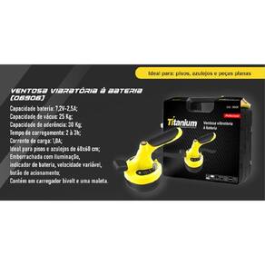 Produto: Maquina para assentamento de pisos, azulejos, cerâmicas e porcelanatos Marca: Khaata Uso: Indicado para assentamento de pisos, azulejos, cerâmicas e porcelanatos Ideal para materiais até: 60x60 CM Poder de vácuo: 25 kgs Frequência de vibração: 5000 a 18000 RPM Bateria: 8V Potência do motor: 150 W Período de carregamento: 2 Horas Fornecimento de energia: Bateria Tipo de bateria: Lítio Duração da bateria: 2500 mA Peso: 0,95 Kg