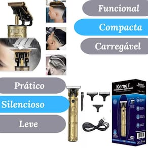 A máquina pode ser usada sem fio Sim, a máquina de acabamento kemei km-700b pode ser utilizada sem fio, proporcionando maior praticidade durante o uso. Quais são os tamanhos dos pentes de corte incluídos A embalagem contém três pentes de corte com tamanhos de 1 mm, 2 mm e 3 mm. Qual é o tempo de carregamento e uso da máquina O tempo de carregamento da máquina é de aproximadamente 2,5 horas, e ela pode ser usada por até 300 minutos após uma carga completa. A lâmina é segura para a pele Sim, a lâmina é arredondada e toca suavemente a pele, evitando acidentes e ferimentos na superfície da pele. O que está incluído na embalagem A embalagem inclui a máquina de cortar cabelo modelo km-700b, três pentes de corte, óleo lubrificante, pente de limpeza, pilha recarregável de alta duração e um manual de instruções Marca: AL